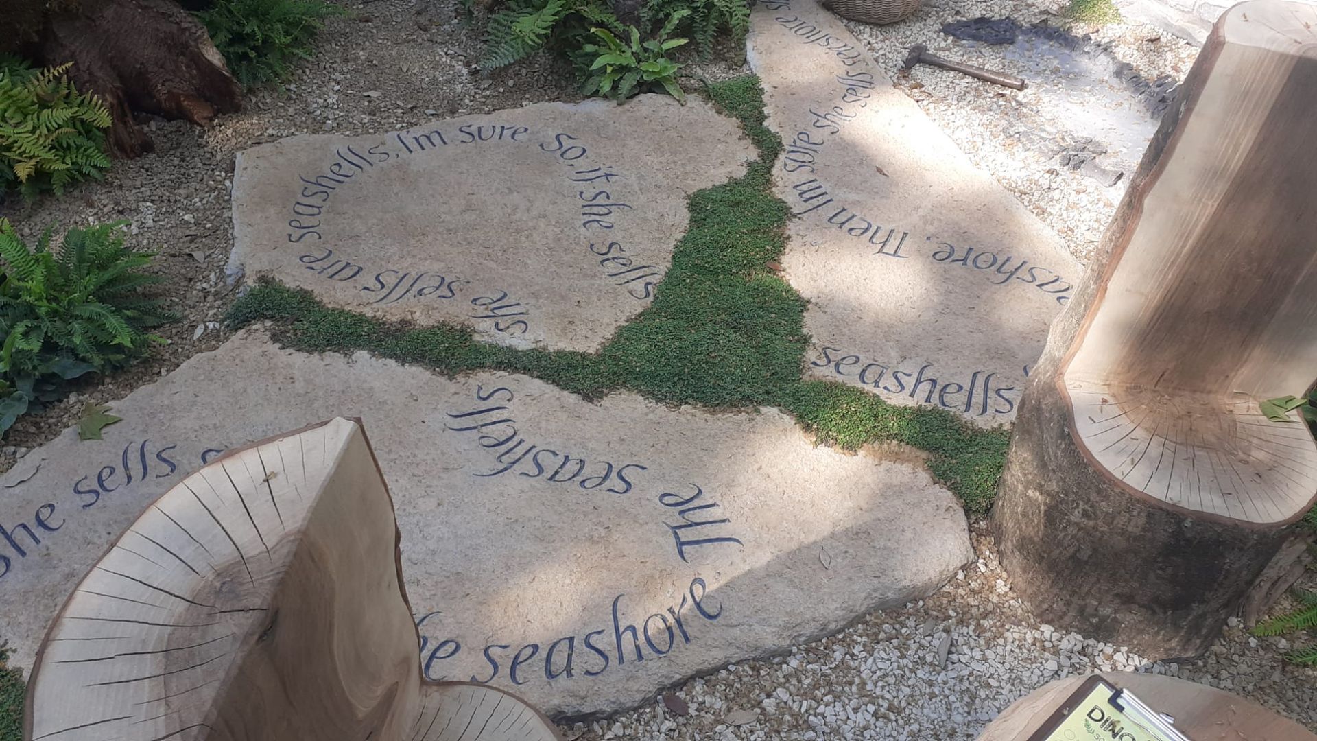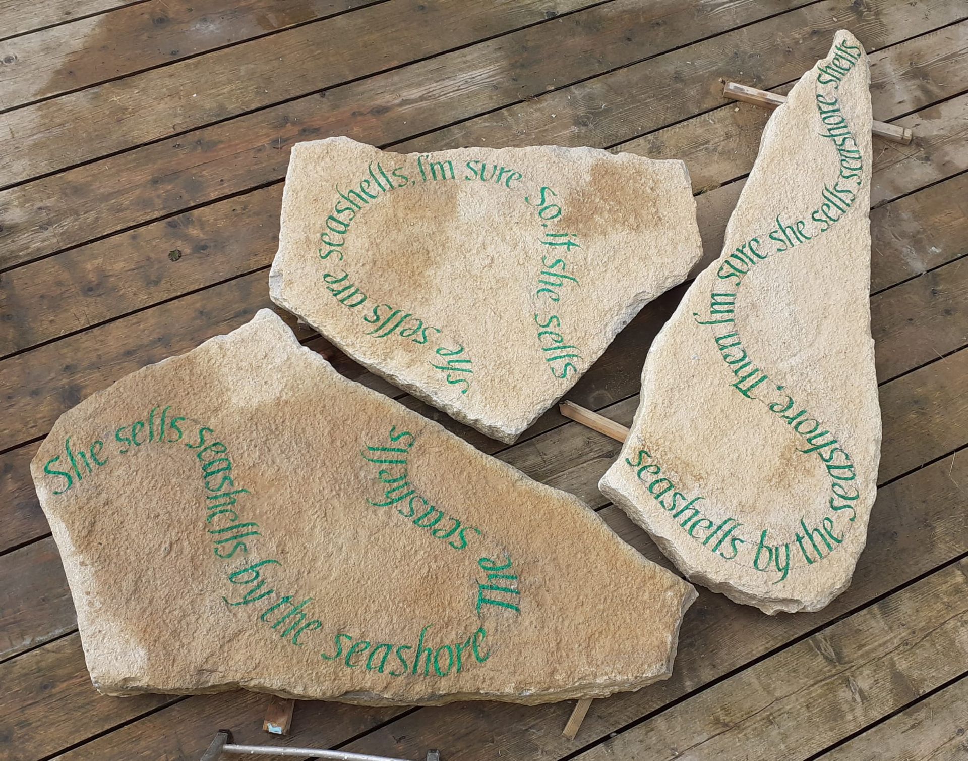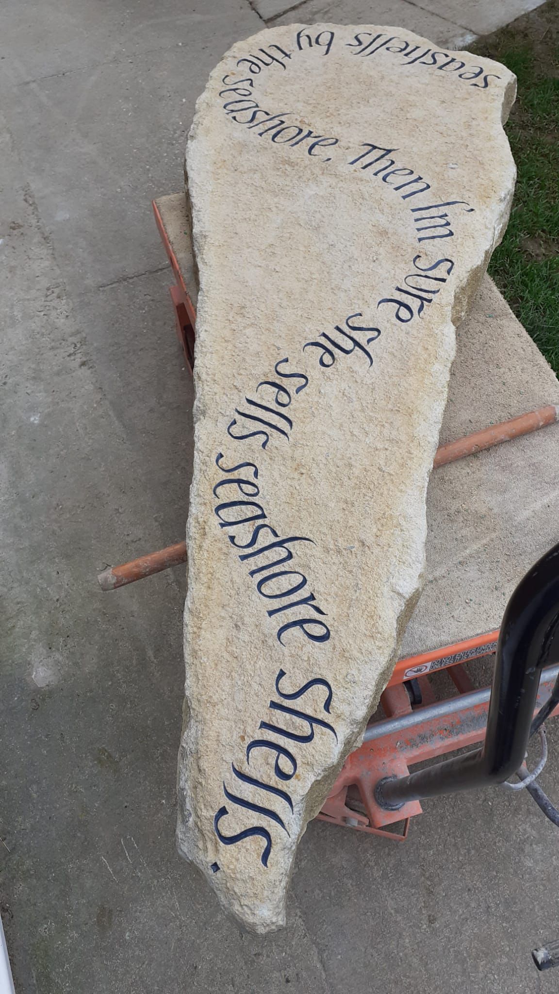I was commissioned by Julie to carve Mary's poem " I see sea shells by the sea shore" into